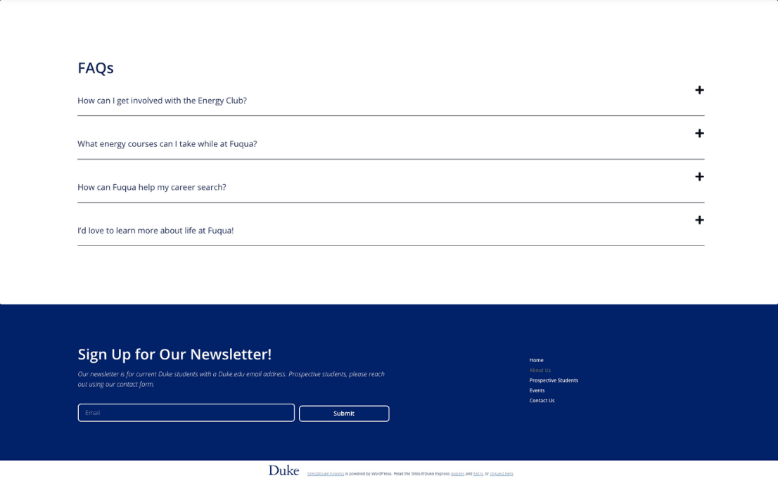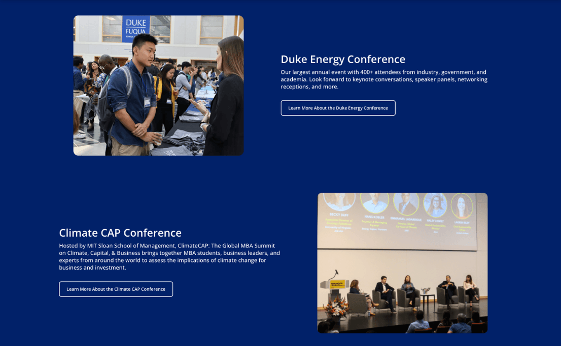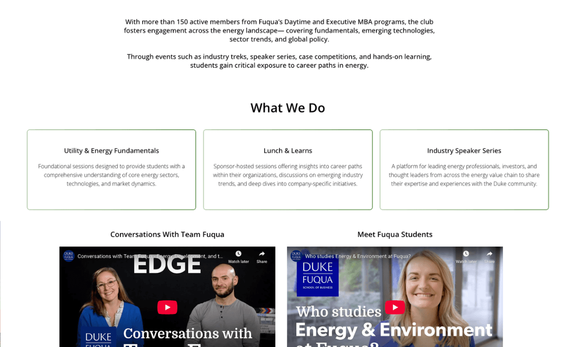 Duke University’s MBA Energy Club set out to refresh its website ahead of recruitment for the incoming 2025 class. The goal was to create a more compelling, easy-to-manage digital presence that clearly communicated the club’s value to prospective members.